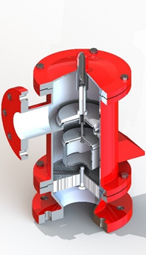 閥盤質量根據油罐的設計允許壓力和閥盤直徑確定,必要時可利用配重調節。當閥盤自由放在閥座上時,在閥盤重力作用下,氟膜片微微凹向空氣墊凹槽。當罐內外壓力差增大時,閥盤微微升起,膜片靠自身的彈性,同閥座仍保持良好的密封,直至整個閥盤跳離閥座,膜片才經反彈逐漸恢復其原狀。