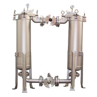 雙聯(lián)切換式過(guò)濾器,采用兩三個(gè)通球閥,將兩個(gè)單筒過(guò)濾器組裝在一個(gè)機(jī)座上,清洗過(guò)濾器時(shí)不必停車,保證其連續(xù)工作。